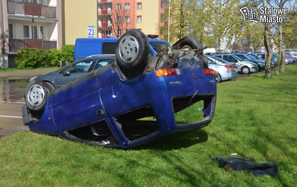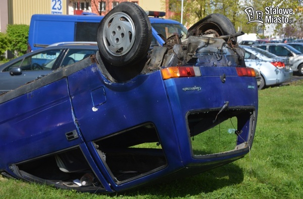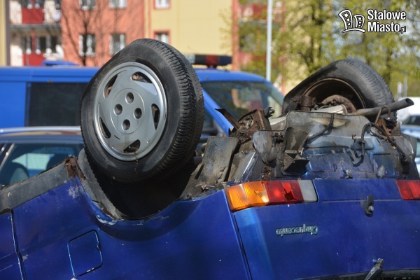 Samochód strażacy ustawili ponownie na kołach i postawili na parkingu. Prawdopodobnie wrak zostanie usunięty na stałe wkrótce.