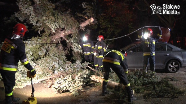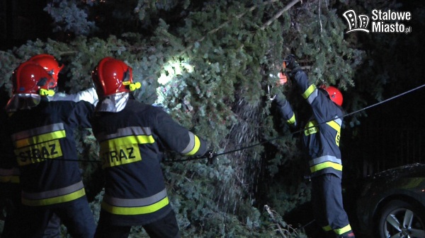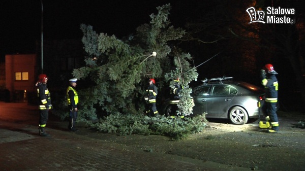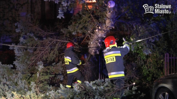 Na miejsce przyjechali strażacy i policja. Leżące na uliczce drzewko trzeba było pociąć na części. Auto najprawdopodobniej nie ucierpiało za bardzo w zdarzeniu. Szczęście w nieszczęściu, że choinka nie spadła również na człowieka.