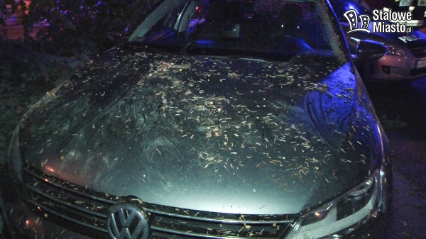 Do zdarzenia doszło około godz. 21:00 na ul. Górka. Jeden z właścicieli posesji układał chodnik na swoim terenie. W tym celu podkopał nieco choinkę, by móc ułożyć kostkę. Niestety, drzewko nie było widać dobrze ukorzenione, bo runęło na ziemię przygniatając samochód marki VW.