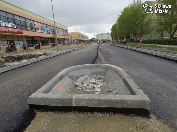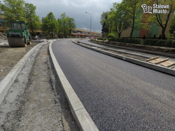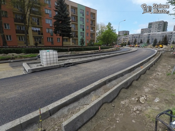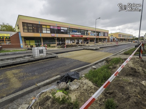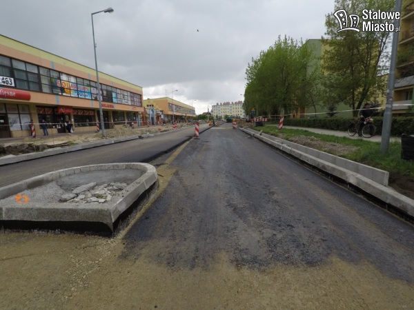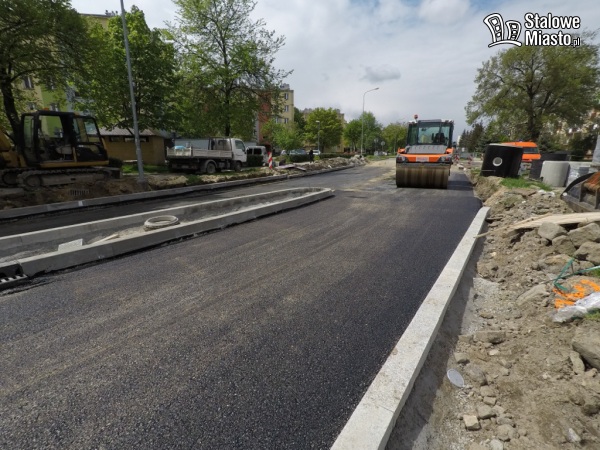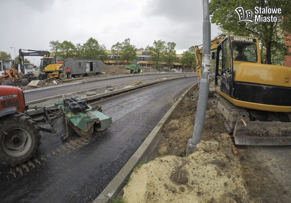 Teraz w pierwszej kolejności robiona jest nawierzchnia jezdni i chodniki, ścieżki rowerowe będą wykonywane na samym końcu. Prace na tym odcinku potrwają jeszcze jakiś czas.