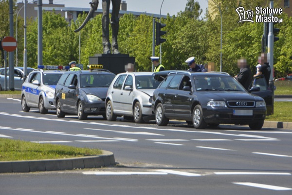 Zdarzenie miało miejsce około godz. 11:50 w Stalowej Woli, na tzw. „dużym rondzie”. W kierunku Poniatowskiego 80 podążał kierujący samochodem marki Audi A4 (rejestracja NO), gdy nagle dostrzegł zmianę świateł. Na skrzyżowaniu tym znajdują się kamery rejestrujące wjazd na czerwonym świetle pojazdów. Mężczyzna przyhamował przed sygnalizatorem bojąc się zapewne, że nie zdąży zjechać ze skrzyżowania w odpowiednim czasie. Tuż za nim jechał Volkswagen Golf (RST). Ten kierowca zdołał zatrzymać pojazd tuż za samochodem marki Audi. Nie zdążył tego zrobić kierujący taksówką (Ford Focus RST) i uderzył w tył Golfa. Ten z kolei wpadł na stojące przed nim Audi.