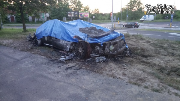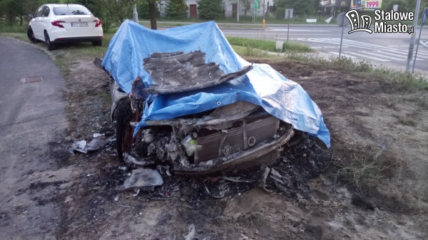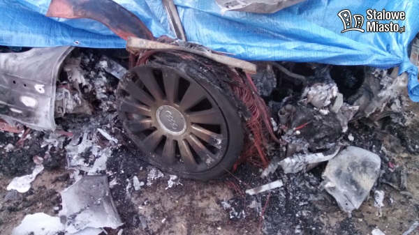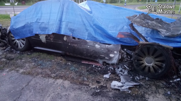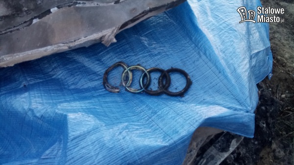 Pojazd gasiły dwa zastępy straży pożarnej. Audi spłonęło doszczętnie.