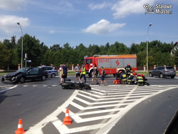 Zderzenie motocyklisty z autem.Są ranni