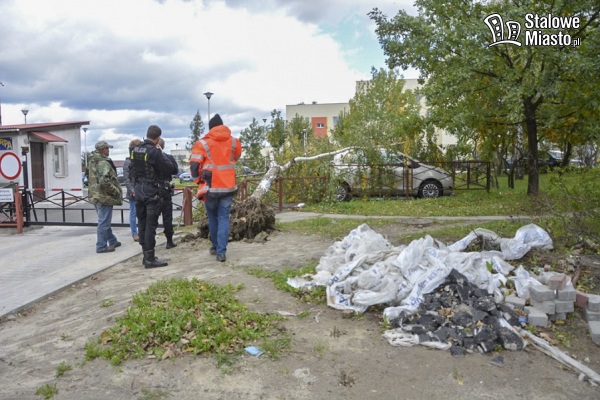 Na miejsce przyjechał patrol policji. Wezwano również strażaków, którzy zdjęli z samochodu wyrwaną przez orkan brzozę…