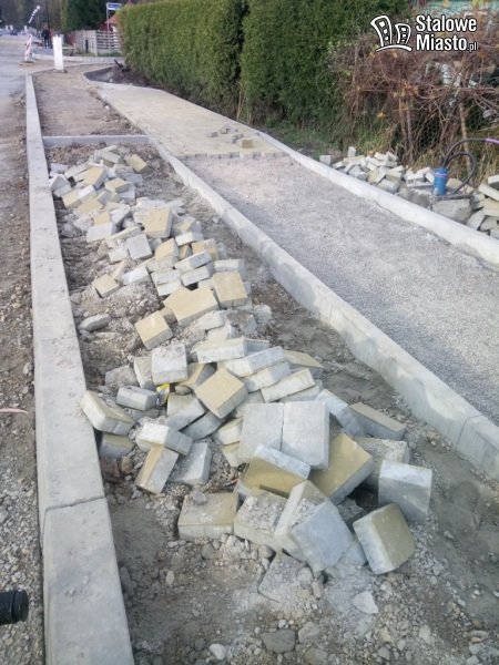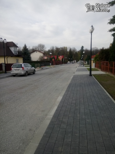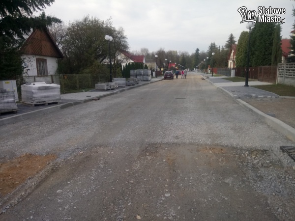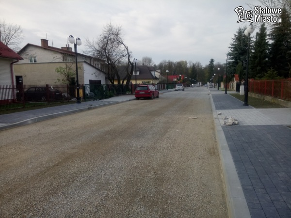 Wykonawcy zostało jeszcze do zrobienia m.in.: położenie asfaltu, wykonanie ścieżek pieszo- rowerowych, ułożenie części jezdni z kostki brukowej oraz postawienie lamp na odcinku od ul. Sandomierskiej do Wspólnej. Oświetlenie od Wspólnej do parku zostało już zamontowane i uruchomione.