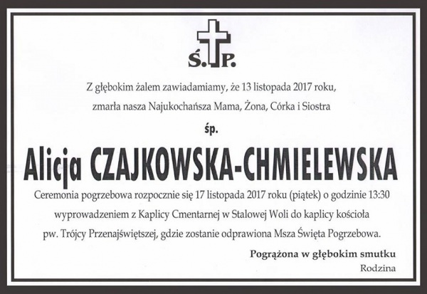 Nie żyje Alicja Czajkowska- Chmielewska