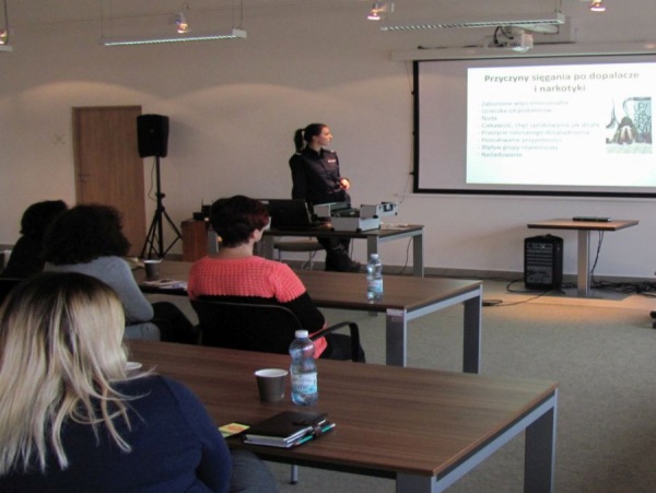 Podczas spotkania policjantka omówiła rodzaje narkotyków, objawy ich zażycia oraz podała czas, po którym można stwierdzić obecność substancji odurzających w organizmie. Opowiedziała, jakie są procedury postępowania w przypadku ujawnienia u ucznia substancji, która w konsekwencji może okazać się narkotykiem lub dopalaczem.