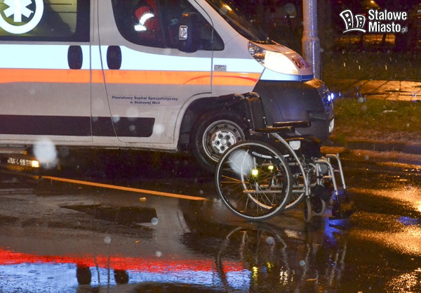 Uderzenie w wózek inwalidzki było tak duże, że niepełnosprawny 39- latek spadł z pojazdu, a auto, które na niego wpadło zatrzymało się dopiero przed skrzyżowaniem z Wojska Polskiego (ze światłami). Kierowca tłumaczył się, że zawiodły hamulce. Mężczyzna z wózka upadł w kałużę wody. Był cały mokry i zziębnięty. Na miejsce wezwano karetkę pogotowia. Ze względu na to, że był głuchoniemy, kontakt z nim był utrudniony. Zdołał napisać na kartce policjantom swoje dane i adres zamieszkania. Mężczyznę odtransportowano do stalowowolskiego szpitala na badania.