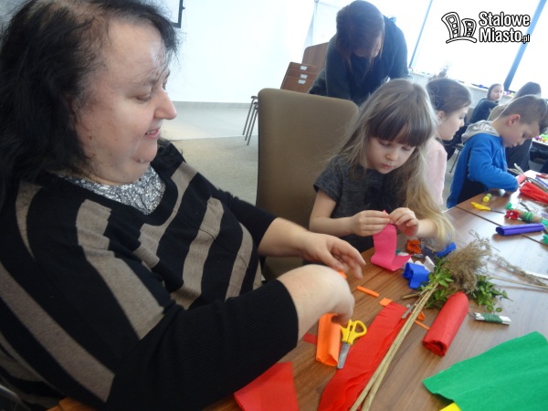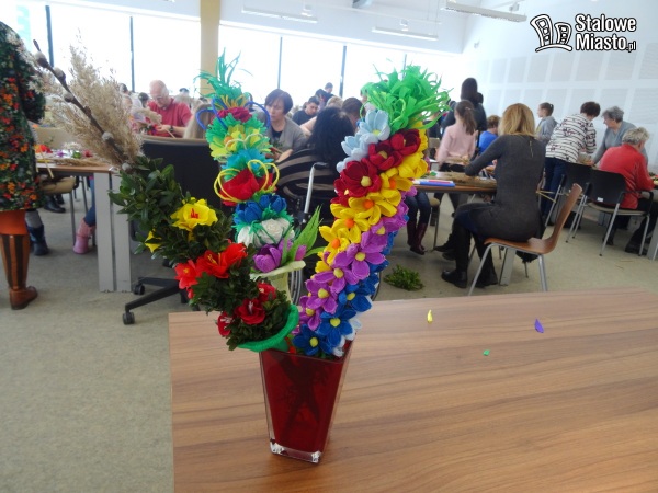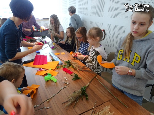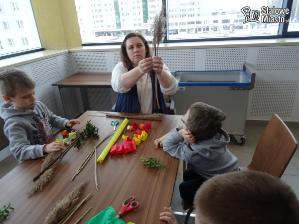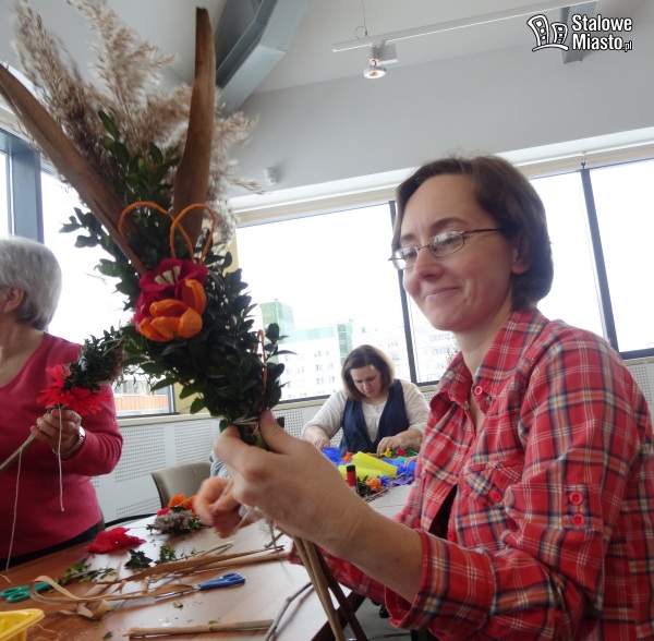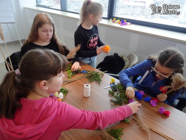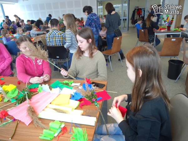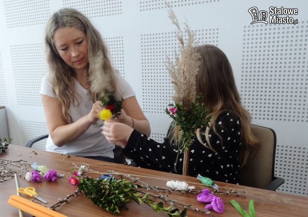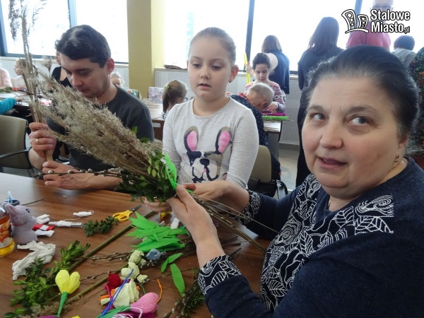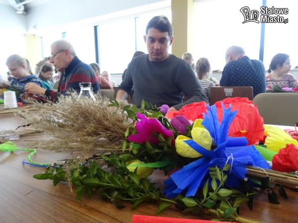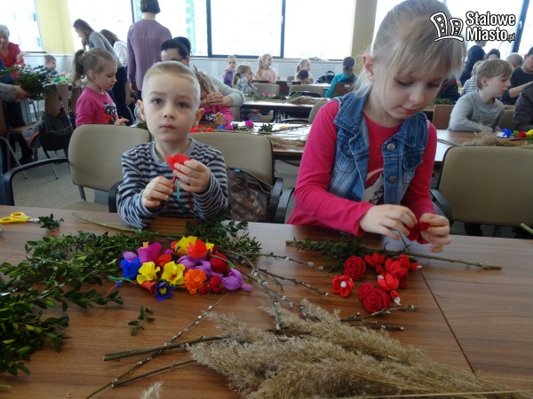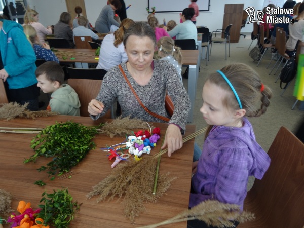 W Polsce palmy wielkanocne robi się z gałązek wierzbowych, często przystrojonych kwiatkami z bibuły czy suszonymi i barwionymi roślinami. I właśnie palmę symbolizującą pamiątkę wjazdu Jezusa do Jerozolimy można było wykonać podczas warsztatów w bibliotece. Pod okiem plastyka i personelu instytucji.