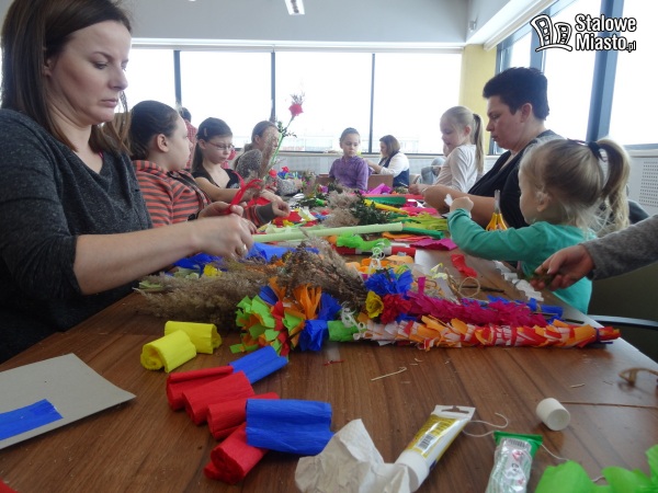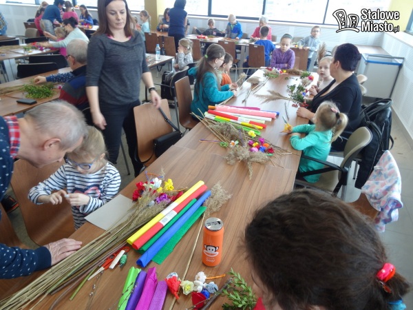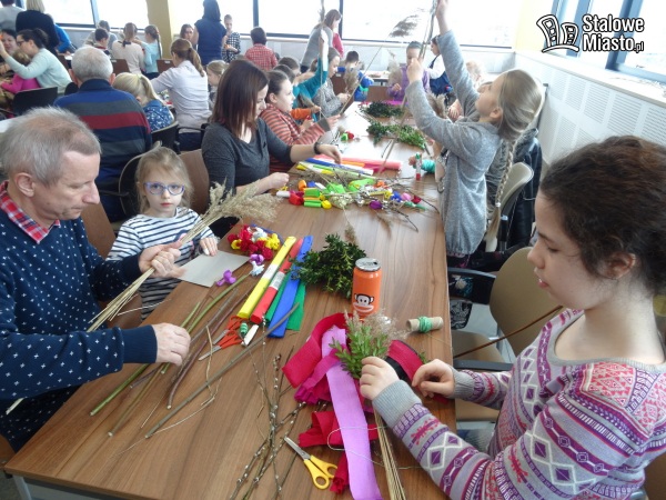 Mimo że za oknami śnieg, mróz i wiatr w Miejskiej Bibliotece Publicznej w sobotę, 17 marca panowała świąteczna atmosfera. A to dlatego, że tego dnia odbyły się tam rodzinne warsztaty wyplatania wielkanocnych palm. Sala, gdzie zorganizowano zajęcia pękała w szwach – 90 osób przyszło do biblioteki by stworzyć oryginalną palmę.