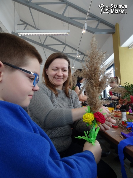 – Bardzo miłe spotkanie w bibliotece, a teraz do dzieła – zobaczymy co nam tu wyjdzie, bo jestem debiutantką, jeśli chodzi o robienie wielkanocnej palmy – przekonywała młoda mama, która zjawiła się w bibliotece razem z synem.