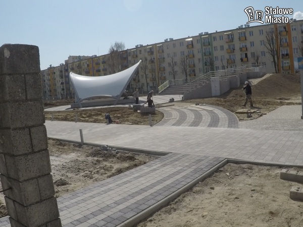 Praca na budowie wre, a teren zmienia się z dnia na dzień. Robotnicy uwijają się, a plac zabaw nabiera właściwych kształtów. Pojawiło się już nowe ogrodzenie i okazały amfiteatr. Jest też nowiutka widownia, większość alejek i elementy zabawowe. Nie wszystko jeszcze przymocowane i osadzone na stałe w ziemi. Są też urządzenia siłowni terenowej, z której będą mogły korzystać osoby w każdym wieku, zarówno te młodsze, jak i seniorzy.