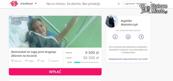 Roztrzaskał jej nogę pirat drogowy. Teraz zbiera na leczenie
