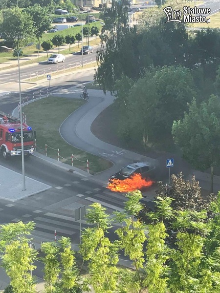 Przy rondzie im. ks. J. Warchoła spłonął samochód