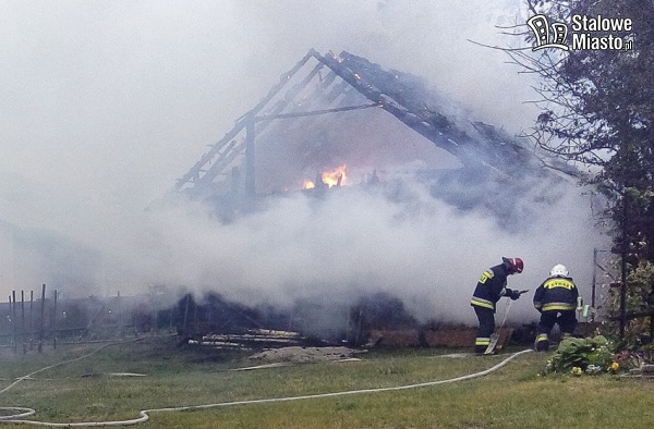 Pożar wybuchł na ulicy Potok. Paliła się drewniana stodoła. Ogień objął swoim zasięgiem cały budynek, który w szybkim czasie spłonął doszczętnie.