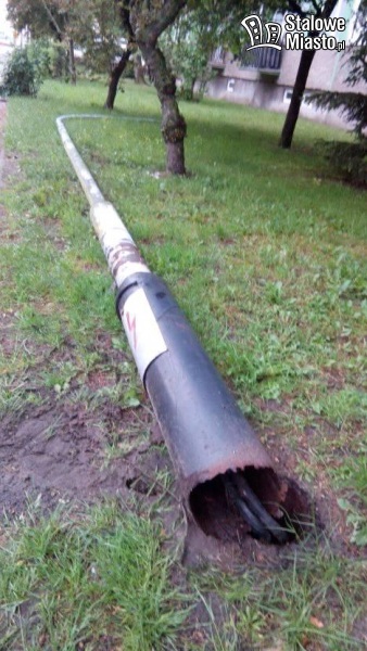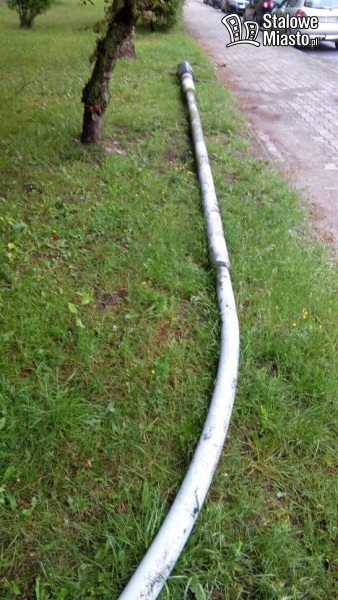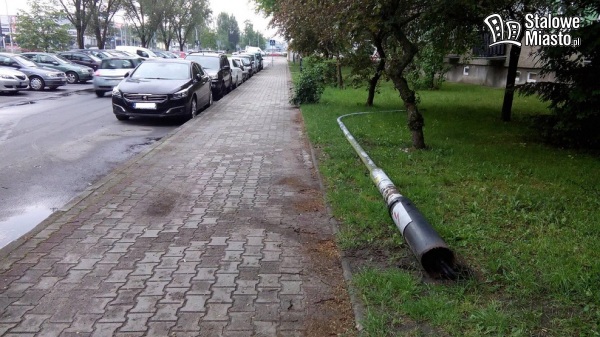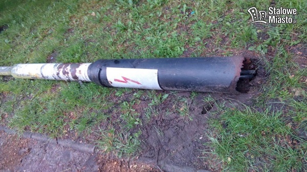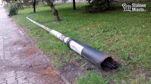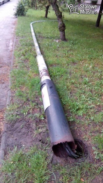 Podczas gradobicia runęła skorodowana u podstawy latarnia uliczna
