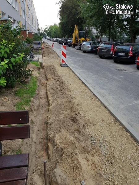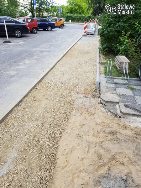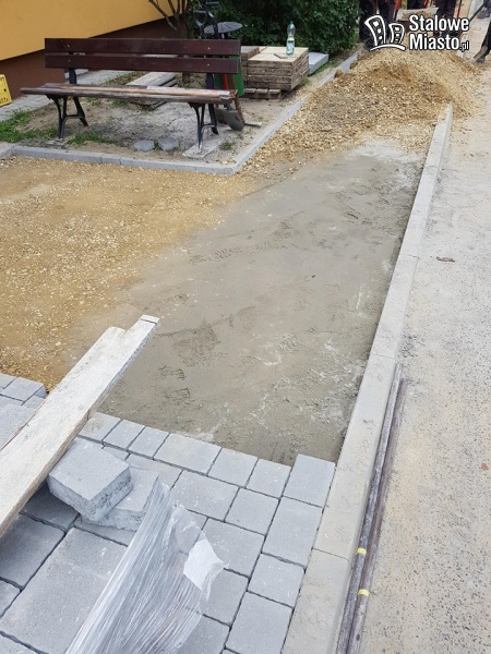 Nowo układany ciąg pieszy znajduje się w pasie drogi osiedlowej należącej do miasta. Wcześniej mieszkańcy chodzili po starych, mocno już wysłużonych płytach chodnikowych (50x50) pamiętających zamierzchłe czasy. Tym bardziej cieszy fakt, że poruszanie się po osiedlu będzie komfortowe.