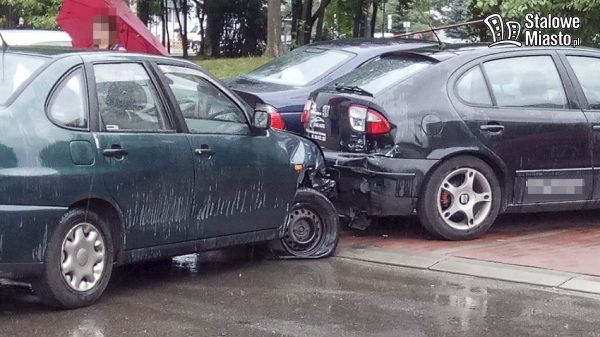 Do tego zdarzenia doszło około godziny 16:15. Ulicą Poniatowskiego w kierunki Lidla (wewnętrzna uliczka osiedlowa) jechał młody mężczyzna samochodem marki Seat Cordoba (auto na stalowowolskiej rejestracji). Padał intensywny deszcz. Droga przed samym rondem nieznacznie skręca w lewo. Kierujący wpadł w poślizg i „nie wyrobił na łuku ulicy” uderzając w dwa zaparkowane przy drodze auta (stojące na miejscach wyznaczonych na parking): BMW i Seat Leon. Wskutek uderzenia Seat „zawisł” na haku zaparkowanego pojazdu. Konieczna była pomoc lawety.