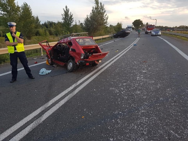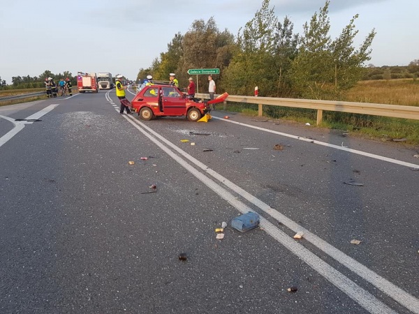 Jak wynika ze wstępnych ustaleń kierujący samochodem osobowym marki Ford Focus (auto na ostrowieckich tablicach rejestracyjnych) na łuku drogi (DK77) zderzył się z Fiatem 126 p, którym jechał 77- letni mężczyzna. Starszy pan włączając się do ruchu nie zachował środków ostrożności. Focus staranował „Malucha” uderzając go w lewy bok, następnie dachował. Kierowca Fiata został ciężko ranny.