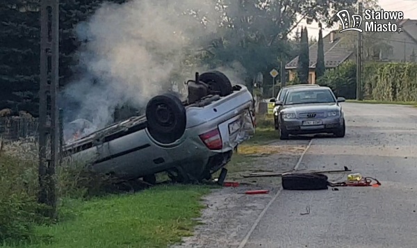 - Wyjeżdżałem do pracy, kiedy na poboczu, blisko placu zabaw, zauważyłem auto leżące na dachu. Na ulicy porozrzucane były części, a także zawartość bagażnika. Podjechałem na miejsce, chłopak leżał obok samochodu, z którego wyszedł chyba o własnych siłach. W aucie pojawił się ogień, w miejscu gdzie jest silnik. Chłopak, ponoć 19 lat, mówił mi że spieszył się do pracy. Miał małe rany na rękach i na moje pytanie jak się czuje, co go dokładnie boli, wspomniał tylko o bólu głowy. W mojej ocenie nie wymagał interwencji, był świadomy sytuacji, leżał spokojnie- relacjonuje mieszkaniec Malców.