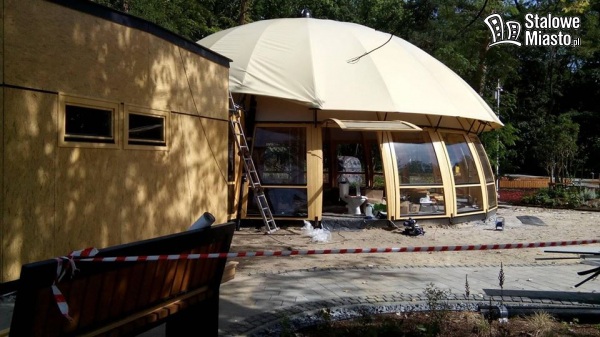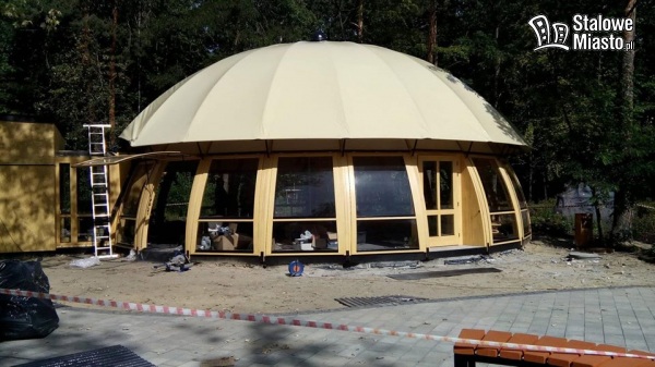 Wraz ze zbliżającą się wielkimi krokami jesienią w parku miejskim coraz więcej liści. Jak na tę poru roku przystało wyrósł również pewien grzybek. Będzie to lokal gastronomiczny. O tego typu miejsce gdzie będzie można kupić coś do jedzenia i picia wielu mieszkańców pytało od dawna.