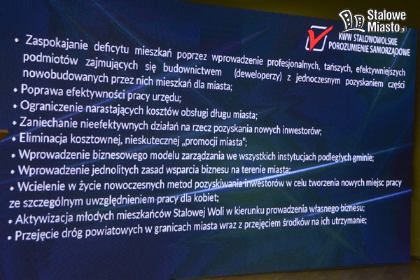 Połączył ich wspólny program wyborczy i wspólna wizja prężnie rozwijającej się silnej Stalowej Woli, a także sprzeciw wobec obecnej polityki prowadzonej przez przedstawicieli partii Prawo i Sprawiedliwość. Chcą walczyć „o inną Stalową Wolę”. Program podzielony został na XII bloków tematycznych: Polityka Senioralna, Polityka Mieszkaniowa i Instytucjonalna, Ochrona Środowiska, Zdrowie, Bezpieczeństwo, Edukacja Zawodowa, Nauczanie Integracyjne- Szkoła Otwarta dla Wszystkich, Wychowanie przez Wolontariat, Edukacja Obywatelska i Prawna, Kultura jako Element Budujący Wizerunek Miasta, Gospodarka i Finanse, Sport i Rekreacja. Spotkanie poprowadził Waldemar Pawłowski.