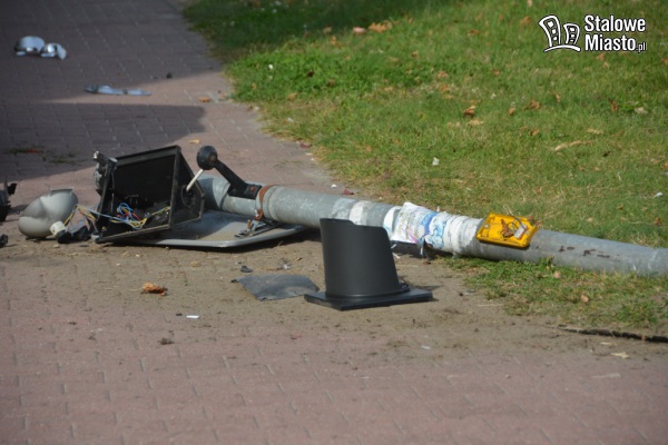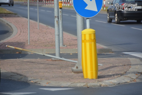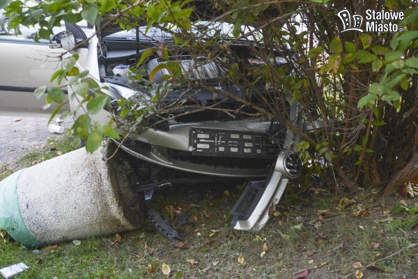 Kobieta autem ścięła znak drogowy, sygnalizator, kosz i drzewo