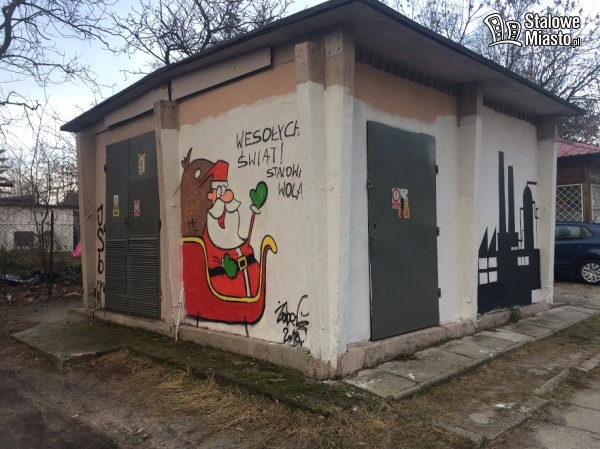 Taki napis, a obok niego pokaźnych rozmiarów Mikołaj pojawił się na stacji transformatorowej nieopodal przejścia przez tory. Od razu zrobiło się świątecznie.