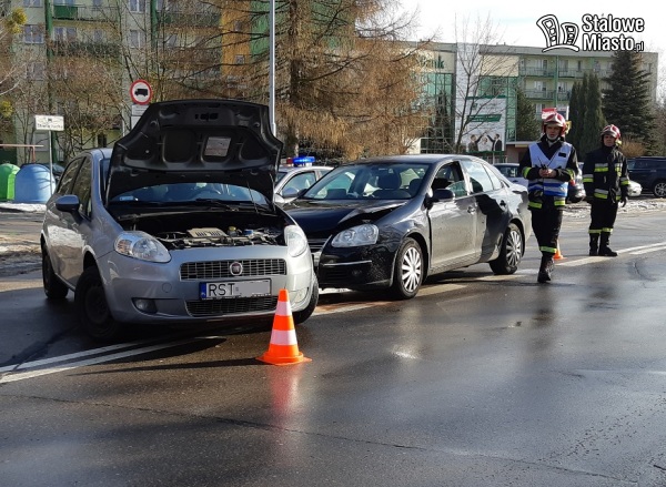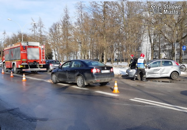 Kolizja miała miejsce na ulicy Okulickiego, na wysokości SanBanku, około godziny 11:25. Jeden z kierujących wyjeżdżał z bocznej uliczki, drugi jechał drogą główną. Uderzenie było na tyle silne, że w jednym z pojazdów wystrzeliła poduszka powietrzna. Uwięzioną w samochodzie kobietę musieli uwolnić strażacy.
