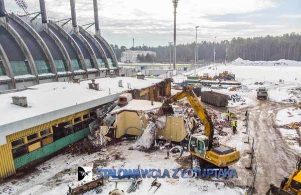 - Warunki pogodowe zachęcają wykonawcę by działał wewnątrz, trwają więc prace instalacyjne, wykończeniowe, bardzo intensywne w tym zakresie. Na zewnątrz zostało zamontowane oświetlenie płyty boiska. W momencie poprawy pogody prace będą wznowione na boiskach bocznych, w tym boisku z pneumatyczną powłoką- mówi Lucjusz Nadbereżny.