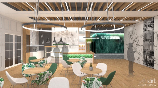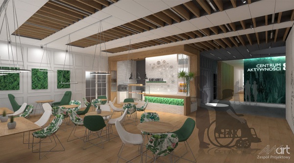 Na prawie 1000 m kw. powstanie powierzchnia o mobilnym charakterze, dostosowana do aktualnych potrzeb seniorów. Zamiast schodów na pierwsze piętro wjedziemy windą. W części lokalu powstanie duża sala widowiskowo – artystyczna na 65 miejsc z modułową, składaną sceną. Ponadto w budynku pojawią się: kawiarenka, sala do nauki języków obcych, sala komputerowa, która w razie potrzeby będzie pełniła rolę sali bankietowej, sala kuchenna, sala prac ręcznych, sala fitness, sala do zajęć wokalnych oraz sala do obsługi prawnej i działań medycznych. Ciekawym pomysłem zaproponowanym przez architektów jest możliwość stworzenia tarasu letniego jako „zielonego dachu”. W lokalu będzie też wydzielona powierzchnia administracyjna dla osoby odpowiedzialnej za obiekt, jak i na potrzeby stowarzyszeń. Całość projektu została dostosowana do potrzeb osób niepełnosprawnych.