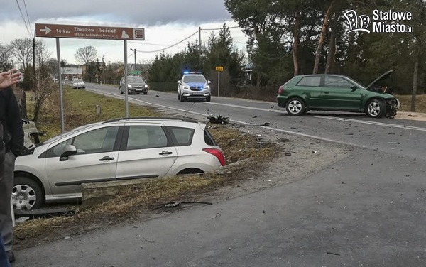 Samochód marki Audi jechał od strony Zaklikowa. Kierujący tym pojazdem nie ustąpił pierwszeństwa przejazdu przez co zderzył się z nadjeżdżającym od strony Stalowej Woli Peugeotem. Siła zderzenia była tak ogromna, że Peugeot wylądował w rowie.