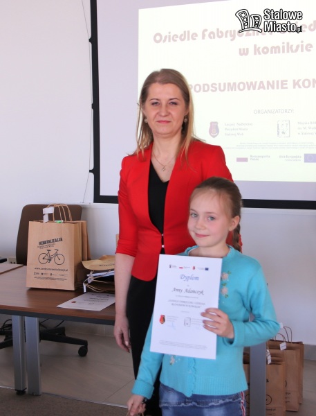 Konkursowym zadaniem było wykonanie komiksu w serwisie ToonDoo ze wspomnianych tematów. Konkurs poprzedzony został warsztatami nauki tworzenia komiksu. W konkursie wzięło udział 10 uczniów. Komisja konkursowa przyznała nagrody: I miejsce - Anna Adamczyk PSP nr 9, II miejsce - Jakub Gałka - PSP nr 9, III miejsce - Piotr Królik PSP nr 7. Za duży wkład pracy Komisja postanowiła przyznać także nagrody pozostałym uczestnikom konkursu (Dominik Małek, Maja Ryczko, Martyna Małek, Bartosz Sojecki, Marcin Dudziński, Zuzanna Czech, Adrian Kaczmarek). Fundatorem nagród był Prezydent Stalowej Woli Lucjusz Nadbereżny. Zdobywcom trzech pierwszych miejsc, pozostałym uczestnikom konkursu, a także warsztatów upominki wręczyła Renata Knap - Zastępca Prezydenta Stalowej Woli. Uczniowie i zaproszeni goście - kierownik Referatu Centrum Rewitalizacji Dominika Czuba-Ofiara, dyrektor MBP Ewa Biały, pracownicy Centrum Rewitalizacji oraz rodzice mogli obejrzeć nagrodzone komiksy w trakcie prezentacji multimedialnej oraz na wystawie w holu Biblioteki Głównej.