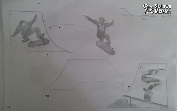 Poniżej przedstawiamy kilka szkiców, jakie mogłyby się znaleźć w skateparku, autorstwa mieszkańca miasta pana Marcina. Jego propozycje trafiły już do prezydenta. Na razie konkurs nie został ogłoszony.