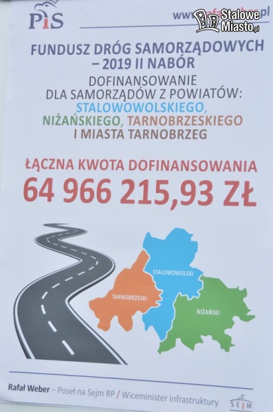 Wiceminister infrastruktury Rafał Weber przekazał bardzo dobrą wiadomość dla naszego regionu. W ramach Funduszu Dróg samorządowych do powiatu stalowowolskiego, niżańskiego i tarnobrzeskiego trafi aż 65 mln zł.