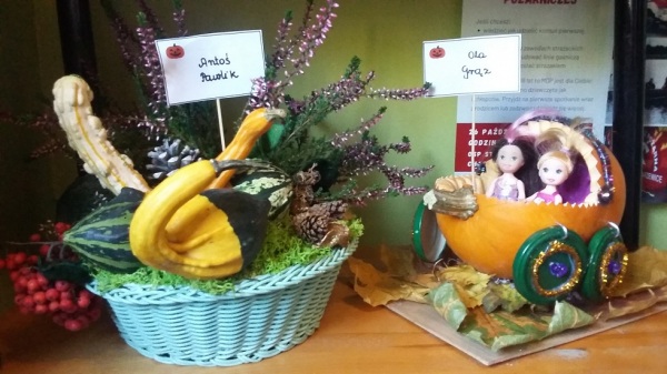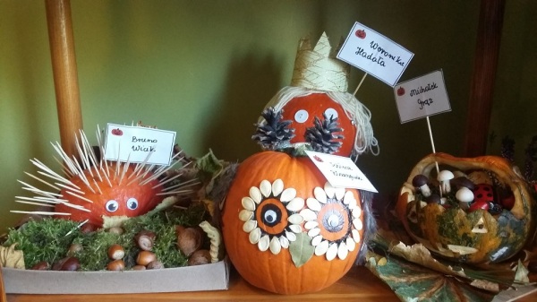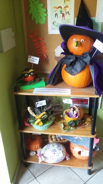 Konkurs "Dyniowe inspiracje" był adresowany do wszystkich chętnych dzieci przy współudziale rodziców, a tematem była oczywiście dynia. Na konkurs wpłynęło 50 prac wykonanych według własnego pomysłu i dowolną techniką plastyczną. Chętnych oczywiście nie brakowało, a pomysłowość dzieci i rodziców, sposób wykonania zadziwił wszystkich. Komisja konkursowa brała pod uwagę przede wszystkim wkład pracy, w tym wkład pracy dziecka, różnorodność wykorzystanych materiałów, kreatywność, zgodność z tematem, oryginalność oraz walory artystyczne i estetyczne pracy.