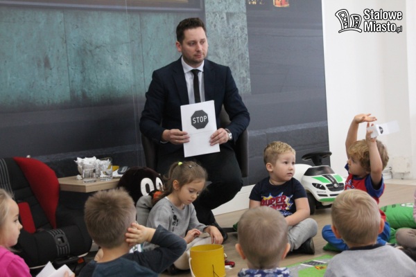 Dzieci po specjalnie przygotowanym torze przejechały trasę ciężarówką przewożąc modele samochodów. Po drodze musiały uważać na znaki drogowe, przejazd kolejowy, czy rondo. Przy okazji zabawy odpowiadały na różne punktowane pytania.