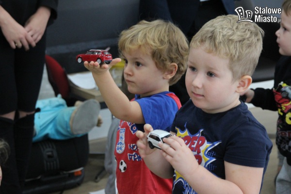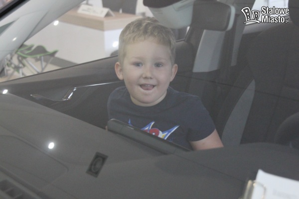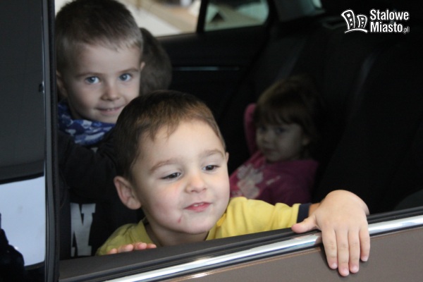 Później przyszedł czas na obejrzenie aut z bliska. Przedszkolaki z zainteresowaniem i ciekawością zaglądały w każdy zakamarek pojazdu. Najbardziej podobał się im sposób otwierania bagażnika w pojeździe. Jedna grupa skupiła się na wykonaniu odpowiedniego ruchu stopą, a inna z przejęciem patrzyła na unoszącą się w górę klapę Škody. Czynność ta sprawiła maluchom wiele frajdy i radości.
