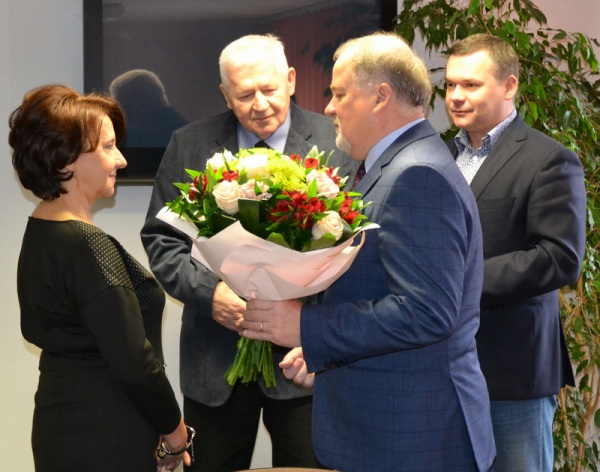 Starosta Stalowowolski Janusz Zarzeczny, Wicestarosta Mariusz Sołtys oraz Członek Zarządu Alfred Rzegocki żegnając dyrektor Domu Dziecka w imieniu radnych Rady Powiatu Stalowowolskiego oraz członków Zarządu Powiatu podziękowali jej za ogromny wkład wniesiony w rozwój tej placówki, za poświęcenie i serce włożone w wychowanie dzieci.