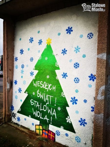 W zeszłym roku artysta obdarował nas pokaźnych rozmiarów Mikołajem, który witał przechodniów ze stacji transformatorowej nieopodal przejścia przez tory. Postać świętego na saniach i życzenia dla mieszkańców Stalowej Woli tak się spodobały, że postanowiono i w tym roku dać nam uśmiech podczas spacerów. Wszyscy udający się na targ, zakupy, idący ulica Okulickiego mają szansę poczuć ducha Bożego Narodzenia. Zatem Wesołych Świąt Stalowa Wola!