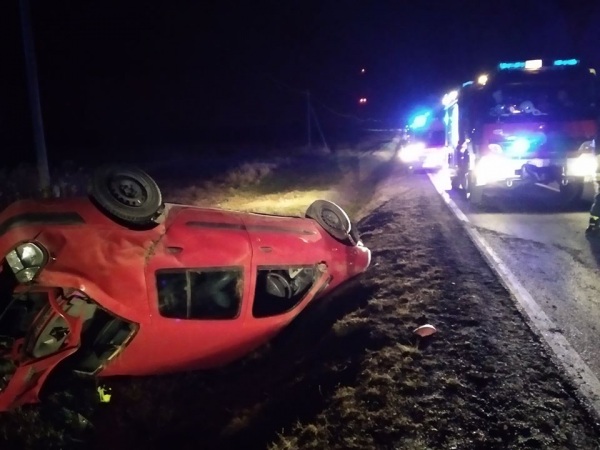 Przyczyną dachowania samochodu osobowego prawdopodobnie było niedostosowanie prędkości do panujących na zewnątrz warunków pogodowych.