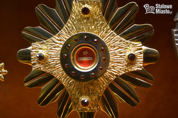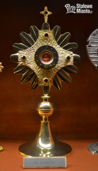 V relikwiarz- zawiera relikwie św. Ojca Pio (to ten sam relikwiarz, który wędrował po rozwadowskich domach w ramach peregrynacji w 2019 roku).