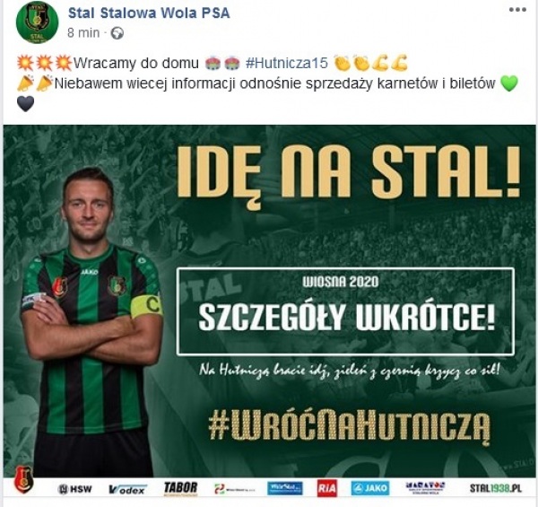 Informację ogłosili na facebooku działacze Stali Stalowa Wola, a miasto ją nawet udostępniło (z zaznaczeniem: „podekscytowane”). Kibice też są podekscytowani, zwłaszcza, że wielu zaczęło szczerze wątpić, że uda się doprowadzić całe przedsięwzięcie związane z modernizacją stadiony do końca. Już wkrótce mają zostać podane do wiadomości szczegóły odnośnie sprzedaży karnetów na mecze przy Hutniczej.