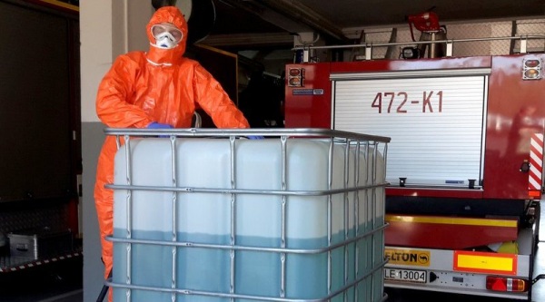 Strażacy otrzymali alkohol etylowy, który posłużył do przygotowania środka dezynfekującego niezbędnego do walki z koronawirusem.