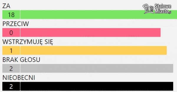 Kiedy przyszło do głosowania „za” przyjęciem uchwały było 18 radnych. Od głosu wstrzymał się Dariusz Przytuła. Wobec irracjonalności uchwały miejskiej, w formie protestu, 2 rajców odmówiło udziału w głosowaniu. Byli to: Andrzej Szymonik i Renata Butryn. Kiedy przewodniczący poprosił o opowiedzenie się „za”, „przeciw” lub wstrzymanie się od głosowania usłyszał jedynie, że radni nie mają zamiaru brać udziału w głosowaniu, w którym króluje „bezprawie”. Ten fakt kolejny raz podkreśliła dobitnie Renata Butryn. W obradach nie uczestniczyli: Maria Chojnacka i Mariusz Bajek.