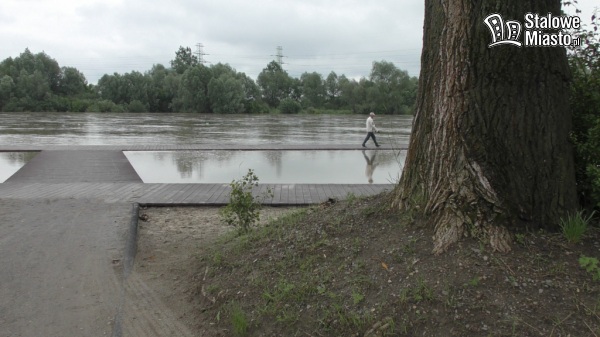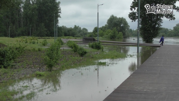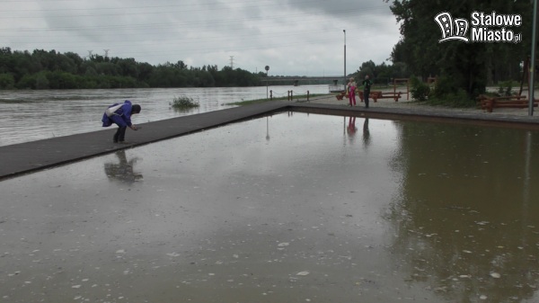 Całkowity zakaz wchodzenia na błonia, woda wypływa z brzegów, ale mieszkańcy pędzą z komórkami, robią zdjęcia i zakazu nie przestrzegają.