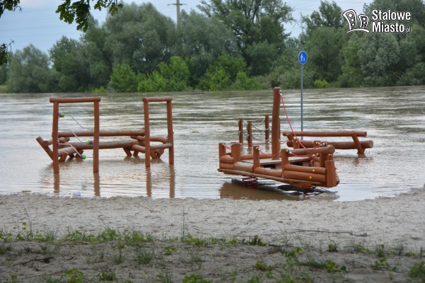 Póki co, zalany został plac zabaw i pas wzdłuż rzeki. Spodziewano się, że będzie dużo gorzej. Dziś na moście pracowali strażacy, którzy przy pomocy sprzętu ciężkiego usuwali spod mostu zalegające duże gabarytowo śmieci, zawleczone przez wartki nurt Sanu.