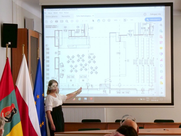 – Dzisiejsze spotkanie ma na celu omówienie jeszcze raz wyposażenia ruchomego. Wykonawca realizuje projekt w formule zaprojektuj i wybuduj. W tym projekcie mamy wszystkie roboty budowlane plus urządzenia stałe, czyli wyposażenie kuchni, meble do zabudowy, kuchenki, mikrofale, lodówki, itp. Na elementy mobilne wyposażenia jak: krzesła, stoliki, fotele ogłosimy dodatkowy przetarg – informuje wiceprezydent Renata Knap.