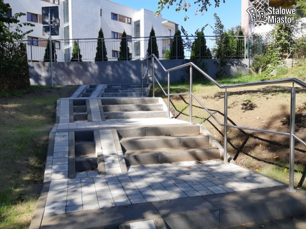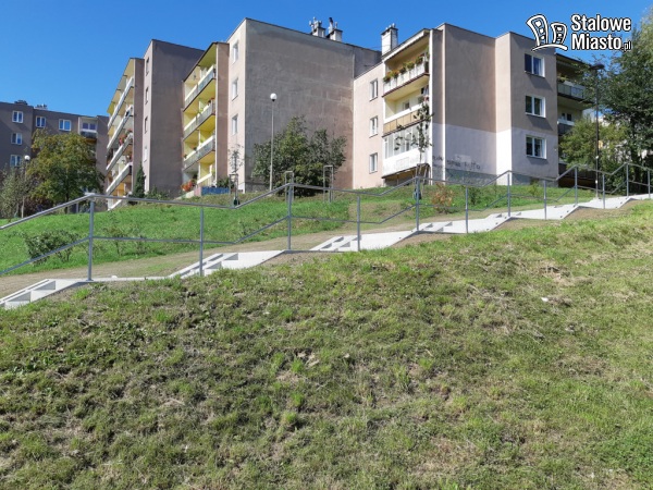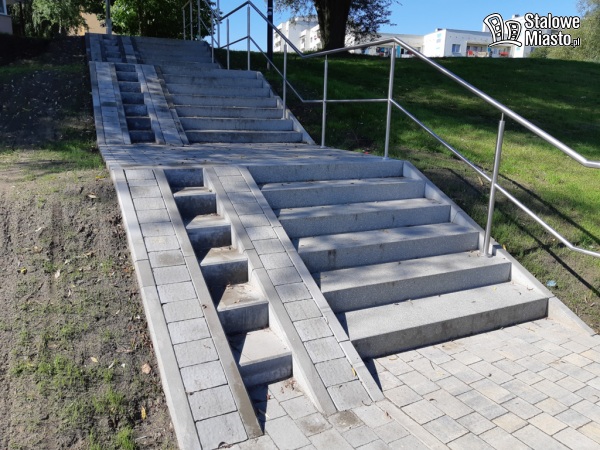 Jakiś czas temu zakończyły się prace naprawcze związane z budową schodów, najazdów i poręczy, które wykonywane były ze środków własnych. O postawienie schodów na skarpie wnioskowali sami mieszkańcy. Zostały one wybudowane z 2 stron, a ponadto jeden niedokończony ciąg pieszy został również uzupełniony o niewielki ciąg schodów. Obok nich pojawiły się znaki zakazujące korzystania z nich rolkarzom, rowerzystom i jeżdżącym na hulajnogach. Na terenie skarpy zainstalowano także monitoring.