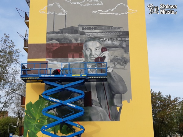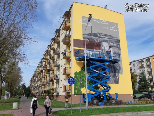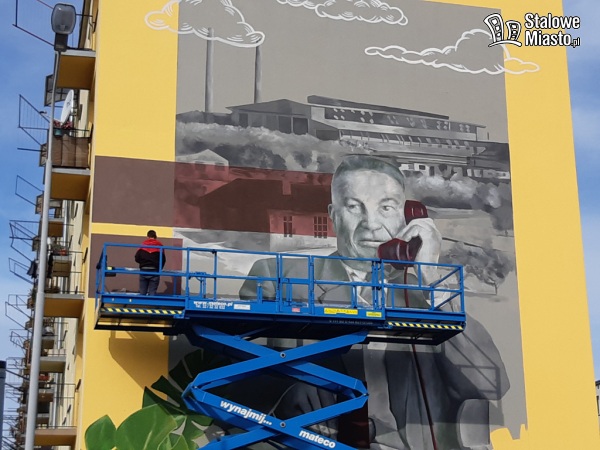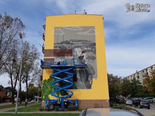 Piękna, słoneczna pogoda sprzyja pracom przy tworzeniu muralu na ulicy Siedlanowskiego 10. To nie tylko sposób na ożywienie blokowisk miejskich, ale symboliczny hołd złożony człowiekowi, również dzięki któremu wybudowano Stalową Wolę, to żywa lekcja historii, która posłuży kolejnym pokoleniom.